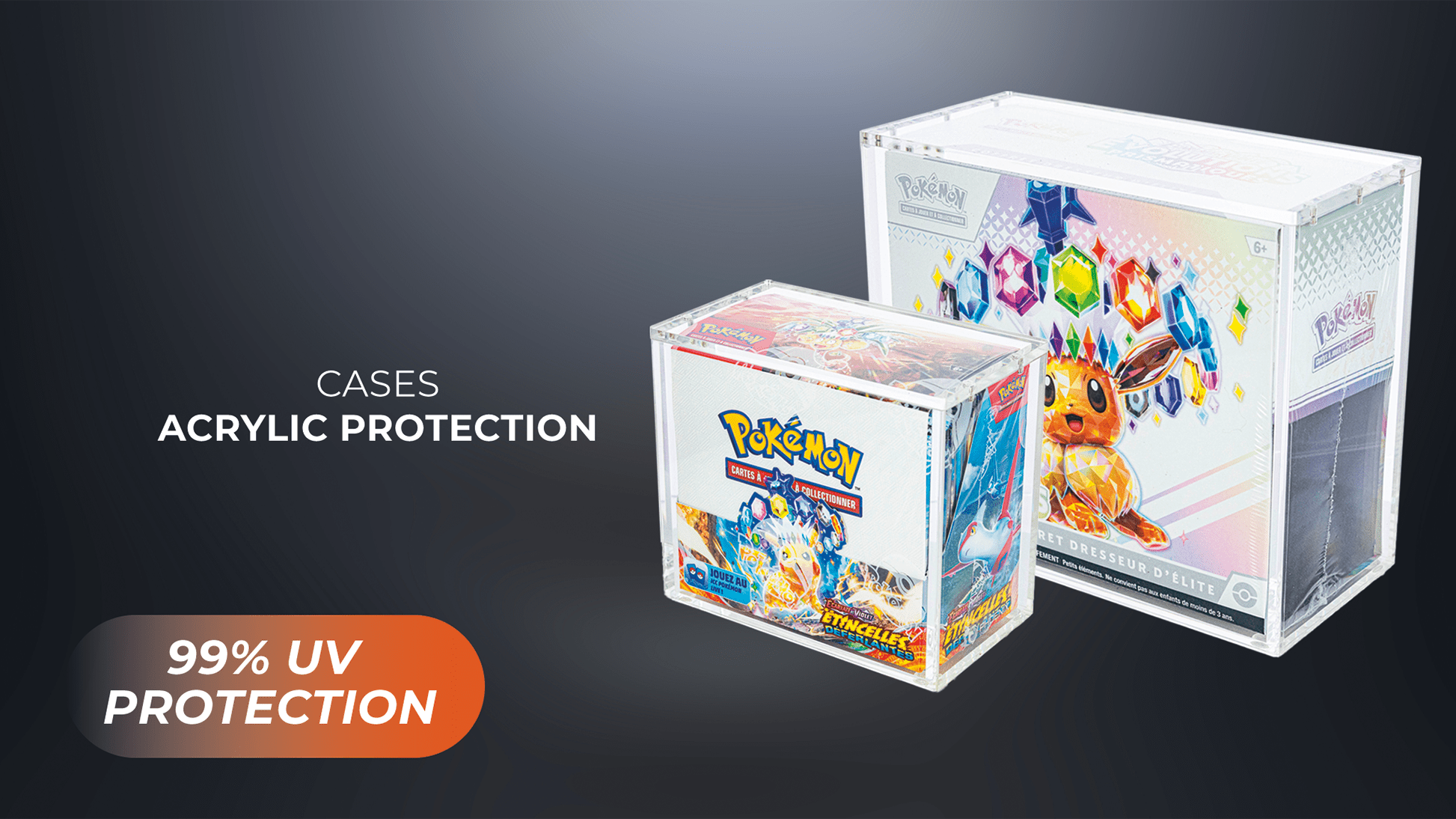 Les protections Acryliques sont conçues pour préserver durablement vos produits scellés tout en les mettant en valeur. Avec une filtration UV minimum de 99 %, une transparence élevée et un dimensionnement précis pour chaque format, elles offrent une protection fiable et un rendu élégant pour votre collection.